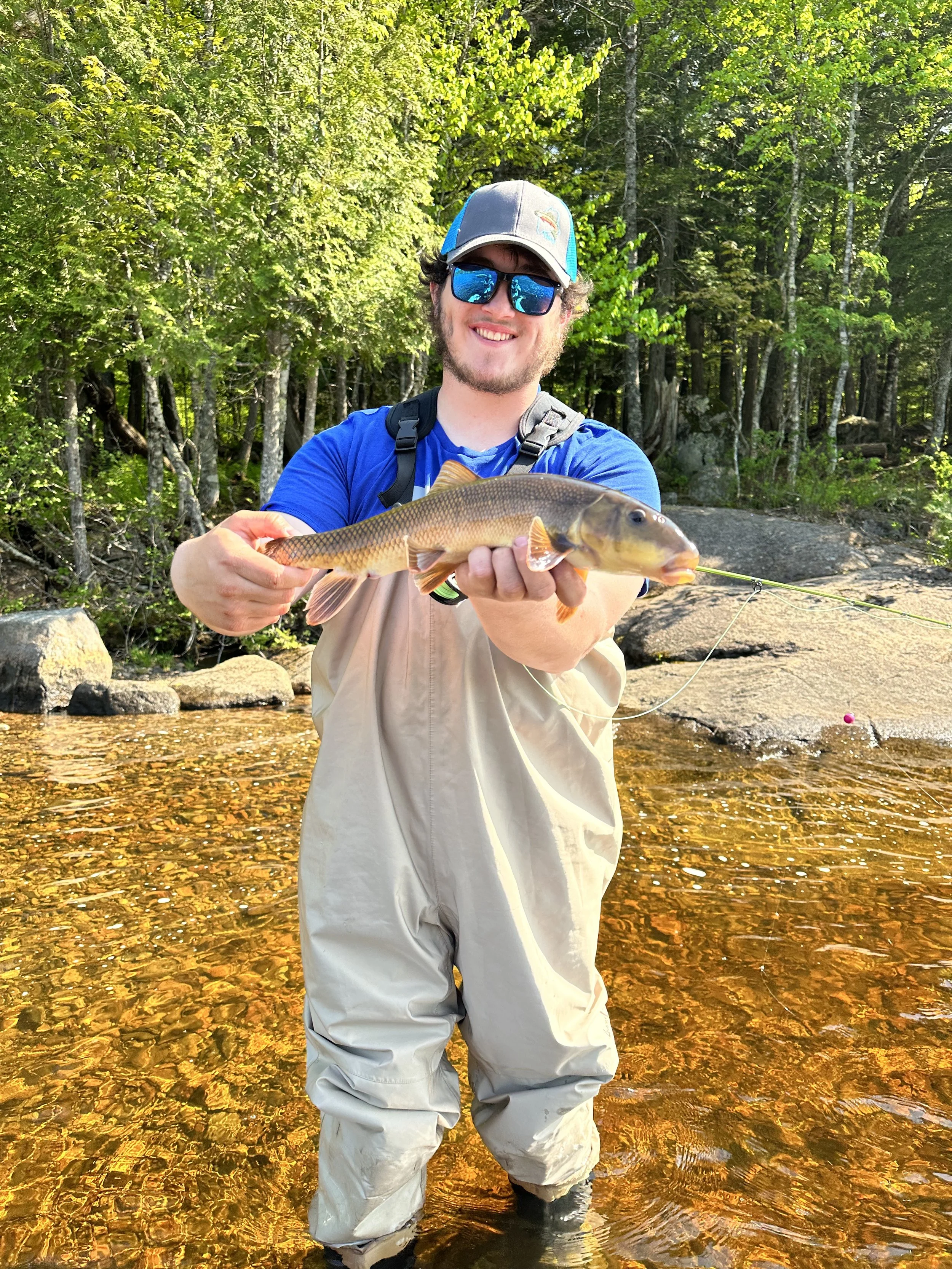 You pick the right fly and lay it out on the water perfectly. A big upstream mend and it starts to happen. The nose of the fish you’ve been casting at for hours splits the water and BOOM, your fly disappears. A subtle lift of the rod and fish on! The adrenaline is running and the hair on your arms is pin straight. Eyes are wide and you can’t help but to let it out. WAHOO! This is how I was hooked from the start. My name is Gavin O’Donnell, I am an avid fly fishermen and outdoorsmen. I have been fishing since before I can recall and fly fishing since I was a young boy. Listening to my father, grandfather, and uncle share their stories about growing up in Maine, and learning to fish always fascinated me. From my love of brook trout native to these waters, along with the landlocked salmon that love to give you a show, an addiction was born. Every time I got to put a rod in my hand the passion grew fonder. Before I knew it, my driving force was wanting other people to feel what I feel out there. I was set on the goal of guiding as my career. Being one with nature, the perfect imperfections of a river is where I find peace on my adventure. Most of my time is spent on the water, whether it is with a client or family and friends. Sometimes my dog Otis gets to come along too. My love for fly fishing is too large to put into words. I’d love to share that with you!
